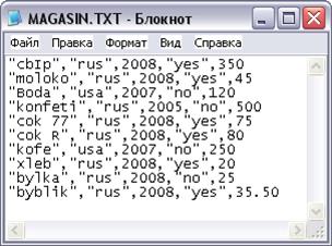 Созданный файл данных magasin.txt из 10 записей рисунок 11.