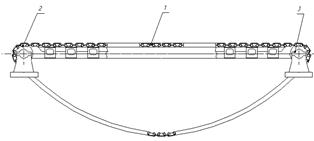 Рис. 3.7.Общий вид приемного конвейера: 1 – цепи конвейера; 2 – ведущие звездочки; 3 – ведомые звездочки Погонная нагрузка от веса груза на цепь: