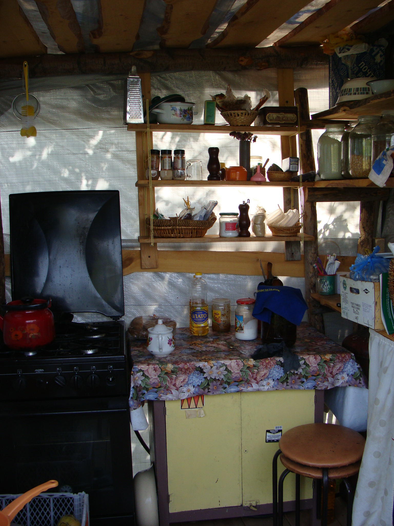 Для долгого и теплого лета Башкирии, по нашему мнению, летняя кухня, семье живущей на земле незаменима. Летняя кухня традиционно используется во многих башкирских деревнях. Такая организация летнего питания позволяет жилому дому «отдохнуть» после зимовки, а семье наслаждаться пребыванием на свежем воздухе. Есть летняя кухня и у нас. Недалеко от дома, в тени деревьев. Поэтому летом 100% времени проводим на природе, т.к. и спим летом в легком навесе – летней спальне. Огород с зеленью и овощами располагаем рядом с кухней. Все самое свежее с грядки тут же поступает на стол. Удобно, красиво, поедается с большим аппетитом. Трапеза становится отдыхом в насыщенную разными трудами летнюю пору. На фото: летняя кухня. Заключение В дальнейшем, я думаю, мы будем стремиться к выращиванию своих злаковых и бобовых культур, перейдем к хлебу из своей цельнозерновой муки, фруктам и сухофруктам, орехам, пряностям. Интересно освоить бахчевые культуры: арбузы, дыни. В идеале на 100% питаться натуральной свежей пищей из своей местности. Жизнь в родовом поместье дает для этого большие возможности! Конечно, есть желание делиться с вами в будущем не только рассказами о нашей жизни, но и своим урожаем, будем производить высококачественные продукты питания!