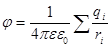 Часто используется единица работы и энергии называемая электронвольтом (эв). 1 электронвольт есть работа, совершаемая силами поля над зарядом, равным заряду электрона при прохождении им разности потенциалов в 1в. 1эв=е*1в=1,6*10-19Кл*1в=1,6*10-19дж. Пусть поле создаётся системой точечных зарядов q1,q2… Расстояние от каждого из зарядов до данной точки поля обозначим r1,r2… Поскольку потенциал является скалярной величиной, то очевидно, что потенциал поля создаваемой системой зарядов, равен алгебраической сумме потенциалов, создаваемых каждым из зарядов в отдельности: