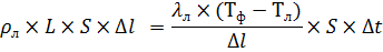 ∆l толщина слоя льда массой m. При этом выделилось количество тепла: Это количество тепла выделившегося через слой льда передается воздуху по закону Фурье: Можно приравнять (1) и (2):