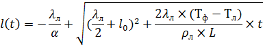 Дифференциальное уравнение Стефана: Таким образом, уравнение (3) позволяет найти зависимость l(t) Тл≈Тв температура льда равна температуре воздуха. Более точным является использование условия теплообмена по закону Ньютона на поверхности льда, на границе раздела льда и воздуха. Граничное условие III рода, это означает по закону Ньютона: