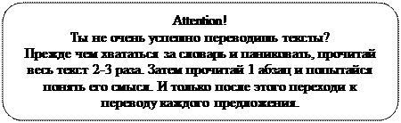 Прочитайте и переводите текст. Будьте готовы пересказать его.