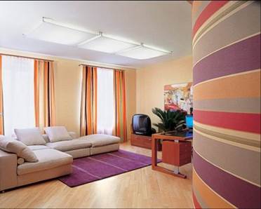 Торжест-венный пафос интерьера усиливается при помощи обилия тяжелых тканей, ковров, богатых сверкающих люстр, позолоченной лепнины.