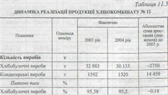 де ΔР — зміна прибутку від реалізації продукції за аналізований період; Р1 — прибуток звітного року; Ро — прибуток минулого року; і — фактори, що впливають на величину прибутку. 1.По Хлібокомбінату № 12. ΔР = 2089,83 тис. грн - 2742,65 тис. грн = -652,82 тис. грн (хлібобулочні вироби); ΔР = 1728,954 тис. грн - 1732,017 тис. грн = -3,063 тис. грн (кондитерські вироби). 2.По Хлібокомбінату № 4. ΔР = 919,4 тис. грн - 1441,1 тис. грн = -521,7 тис. грн (хлібобулочні вироби). ΔР - 63,6 тис. грн - 74,2 тис. грн = -10,6 тис. грн (кондитерські вироби). Якщо порівняти абсолютну суму валового прибутку по двох хлібокомбінатах, то можна зробити висновок, що на Хлібокомбінаті № 12 цей показник набагато вищий (у 2004 році 3818,784 тис. грн проти 983 тис. грн, у 2003 році — 4474,667 тис. грн проти 1515,3 тис. грн). Дані табл. 11.5 і табл. 11.6 свідчать, що валовий прибуток по двох хлібокомбінатах мас негативну тенденцію. Особливо ця негативна тенденція проявляється щодо прибутку від реалізації хлібобулочних виробів. Очевидним є те, що такої загальної оцінки прибутку від реалізації продукції не достатньо для того, щоб дати кваліфіковану оцінку факторам, які на нього вплинули, та оцінити резерви зростання. Розрахуємо та оцінимо вплив окремих факторів на прибуток — відпускних цін, обсягу реалізованої продукції, змін у структурі й асортименті та собівартості: