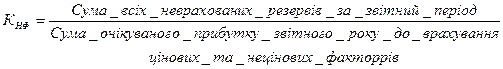 де КРЗв. – коефіцієнт рентабельності продукції, що вже реалізована в звітному році; ІЦ – очікуваний індекс зміни цін на товарну продукцію; ІНЦ – очікуваний індекс зміни цін на ресурси, що формують собівартість товарної продукції. Коефіцієнт рентабельності продукції, що вже реалізована в звітному році, необхідно розрахувати за фактичними даними. Очікувані індекс зміни ціна товарну продукцію та індекс зміни цін на ресурси, що формують собівартість товарної продукції, визначити за даними підприємства або взяти у працівників планового відділу. 7.4. Коефіцієнт зростання прибутку з урахуванням нецінових факторів можна обрахувати за формулою: