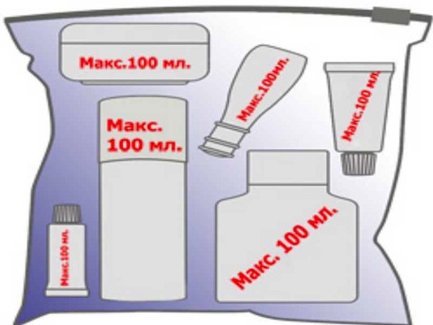 Вот эти емкости нужно упаковать в один прозрачный пластиковый пакет. Общее количество жидкости — не более 1 литрa на человека (если иное не оговорено перевозчиком). Все жидкости, которые были куплены в «Duty Free» упаковываются в специальные пакеты (рекомендуется их не открывать, пока не пройдете осмотр) и являются дополнительным объемом ко всем остальным жидкостям ручной клади.