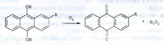 Промислове виробництво водню пероксиду здійснюють шляхом автоокисления повітрям похідних алкілантрагідрохінонів: