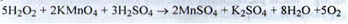 При стоянні синє забарвлення ефірного шару переходить в зелену внаслідок переходу Сг6+ в Сг3+. Діетиловий ефір додають для вилучення надхромових кислот. 3. Розчин повинен витримувати вимоги за кількісним вмістом Н202 (ДФУ) Випробування на чистоту. У препараті регламентується кислотність, кількість органічних стабілізаторів і сухий залишок. Кількісне визначення. Перманганатометрія без індикатора, (s = 2,5) (ДФУ):