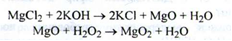 2. Реакцією утворення надхромових кислот підтверджують наявність перекису водню. Випускається гидроперит в таблетках (1 таблетка відповідає 15 мл 3 % перекису водню). Кількісне визначення. Йодометрія; (5 = 1 /2). Вміст водню пероксиду -35 %. Магнію пероксид (Маgnesii регохуdum)
