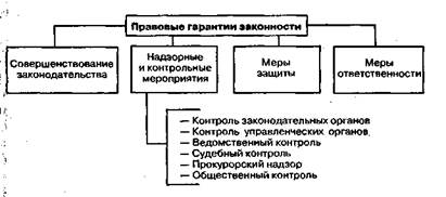 Гарантии законности. Понимание важности режима законности для жизни общества требует обращения еще к двум острым вопросам: к вопросу соотношения законности и целесообразности и к