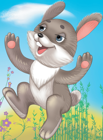 Оля: Это заяц. Заяц белый, красивый, хороший. Заяц прыгает.