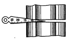 Работы по сплошной плановой регулировке или разгонке зазоров, как правило, выполняются при комплексных планово-предупредительных работах и при ремонтах пути. В отдельных случаях они могут выполняться и как самостоятельные. В состав работ входят: измерение зазоров, составление расчетной ведомости стыковых зазоров, передвижка рельсов в соответствие с расчетными величинами сдвижек, закрепление передвинутых рельсов на новом месте. Разница в температуре рельсов, при которой измерялись зазоры и производятся работы по их регулировке или разгонке, не должна быть более 5° С. Для измерения зазоров используется металлический клин с делениями (рис. 2.36), который заводится в зазор с внешней (нерабочей) грани головки рельсов на уровне средней ее части.