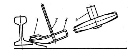 Работы по перешивке (исправлению) колеи разделяются на подготовительные, основные и заключительные. Места перешивки и исправления ширины колеи бригадиром пути отмечаются заранее мелом на шейке рельса той нити, которая должна перемещаться. В подготовительный период выполняют работы по очистке места перешивки от снега или засорителей, зачистке заусенцев с антисептированием зачищенных мест (на деревянных шпалах или переводных брусьях), установке стяжного прибора, опробыванию костылей на их выдергивание. В основной период вытаскивают костыли, антисептируют костыльные отверстия и в них вставляют пластинки-закрепители, сдвигают перешиваемую рельсовую нить в требуемое положение, забивают в шпалы на каждом конце по два костыля. В заключительный период забивают в шпалы остальные костыли и, если по месту перешивки пропущен поезд (или несколько поездов), добивают ранее забитые костыли; с поверхности балластной призмы Убирают щепу (образовавшуюся при зачистке заусенцев) или изъятые из-под металлических подкладок изношенные прокладки и др. При затруднительном выдергивании костылей в зимнее время используют костыленаддергиватель с предохранительной накладкой (рис. 2.46); без предохранительной накладки производить наддергивание костылей запрещается.