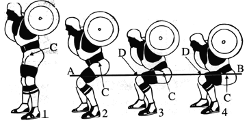 УПРАЖНЕНИЯ ПАУЭРЛИФТИНГА И ПРАВИЛА ИХ ВЫПОЛНЕНИЯ 1. После снятия штанги со стоек атлет может двигаться назад или вперед, и становится в исходное стартовое положение лицом к передней части помоста. Спортсмен должен расположить штангу не ниже 3см от вершины заднего пучка дельтовидных мышц. Штанга должна лежать на плечах горизонтально, руки или пальцы должны обхватывать гриф (положение большого пальца не регламентировано). Ноги находятся на помосте, колени должны быть выпрямлены (см. диагр. 1). 2. В этой позиции спортсмену нужно ждать сигнала старшего судьи. Сигнал подается после того, как штанга будет правильно расположена на плечах и спортсмен прекратит какое-либо движение. Сигнал старшего судьи состоит из движения рукой вниз и громкой команды "Squat" («сквот»). 3. Получив сигнал старшего судьи для начала упражнения, атлет должен согнуть ноги в коленях и опустить туловище так, чтобы верхняя часть поверхности ног в тазобедренных суставах была ниже, чем верхняя часть коленей (см. диагр. 1-4). 4. Атлет должен самостоятельно, без двойного движения, вернуться в вертикальное положение с полностью выпрямленными в коленях ногами. Штанга может иметь остановку в движении, но не допускается движение штанги вниз. Когда атлет примет неподвижное положение, старший судья должен дать сигнал вернуть штангу на стойки. 5. Сигнал вернуть штангу на стойки состоит из движения руки назад и отчетливой команды “Rack” («рэк»). Тогда спортсмен обязан сделать попытку вернуть штангу на стойки. 6. Спортсмен должен быть расположен лицом к передней части помоста (к старшему судье). 7. Во время выполнения упражнения атлет не должен касаться втулок или дисков. Однако, тыльной стороной ладони во время обхвата штанги разрешается касаться внутренней поверхности втулок грифа. 8. Во время выполнения приседания на помосте должно находиться не более пяти и не менее двух страхующих/ассистентов. Старший судья на помосте, по согласованию с главным судей соревнований для обеспечения безопасности атлета, может допустить на помост дополнительных страхующих из команды спортсмена. Но общее число страхующих не должно превышать 5 человек. Только официальные страхующие могут оставаться на помосте во время выполнения упражнения. 9. Спортсмен может обратиться за помощью к страхующим/ассистентам для снятии штанги со стоек; однако, как только штанга покинет стойки, страхующим/ассистентам запрещается помогать спортсмену принимать стартовую позицию. Ассистенты могут оказать помощь атлету удержать контроль над штангой, в случае если он споткнется или иным образом потеряет равновесие. 10. Спортсмен получает только один сигнал для начала выполнения упражнения. 11. Спортсмен, по решению старшего судьи, может получить дополнительную попытку на тот же вес, если предыдущая попытка не была успешной по вине страхующего/ассистента.