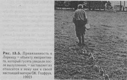 и на особь другого вида, с которой воспитывался детеныш. Например, половое поведение кота будет направлено не на кошку, а не собаку, если кот с момента рождения «воспитывался» вместе с собакой. 3. Реакция следования - «слепое» (автоматическое) следование новорожденного за родителями. Эта форма импринтинга наиболее демонстративна и хорошо изучена. Считают, что моторным эквивалентом реакции следования животных у ребенка является улыбка, постоянная смена мимики, появление комплекса оживления уже на 2-м месяце жизни. 3. Классические условные рефлексы по И. П. Павлову и их торможение при неподкреплении. Например, на звук колокольчика у собаки выработали условный рефлекс слюноотделения (это и есть научение). Однако если колокольчик применять многократно без подкрепления, слюноотделение на звук колокольчика прекратится (собака научилась не реагировать, так как не получает подкрепление, - рефлекс заторможен). Б. Активное (оперантное) научение - это научение, в ходе которого организм добивается полезного результата с помощью активного поведения, действия. Имеется два основных подобных вида научения - метод проб и ошибок и инструментальный условный рефлекс. 1. Метод проб и ошибок. Американский ученый Э. Торндайк (1890), видный бихевиорист (англ. Ьепауюиг - поведение), поме- щал голодных кошек в так называемые проблемные клетки, которые открывались в том случае, если кошка предпринимала какие-то определенные действия - тянула за веревку, приподнимала запорный крючок и т. д. Когда кошка выходила из клетки, она получала пищу. По мере повторения процедуры выхода из клетки, т. е. увеличения числа проб и ошибок, скорость выполнения задачи возрастала. 2. Инструментальный условный рефлекс. Научение может проводиться по сигналу с целью избавления или избегания неприятного воздействия, например, раздражения электрическим током, пропускаемым через металлическую сетку пола, получения еды и т. п. Так, животное (крыса) по световому сигналу нажимает на рычаг и выключает электрический ток, чтобы избежать или избавиться от раздражения. Крыса также научается реагировать на световой раздражитель - нажимает на рычаг, чтобы получить пищу, т. е. она использует какой-то инструмент - отсюда и название этого вида научения. В. Научение путем наблюдения (дети повторяют действия родителей, гимнаст зрительно запоминает спортивные упражнения и т. д.). Следует подчеркнуть, что в конкретных ситуациях для достижения того или иного полезного приспособительного результата индивидуум чаще всего реализует не один, а несколько видов научения. Частное научение (обучение игре на музыкальном инструменте, обучение работе на компьютере и т. д.) по своей структуре всегда является комплексным. Как отмечалось выше, торможение условных рефлексов также является одним из видов научения.