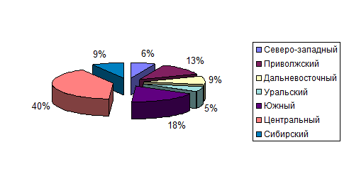 Рисунок 3.1 - Распределение миграционного прироста по федеральным округам в 1996 – 2000 годах.