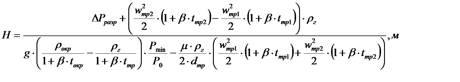 Расчет дымовой трубы Действительное разряжение, создаваемое трубой должно быть на 30-50 % больше расчётной потери давления в тракте: