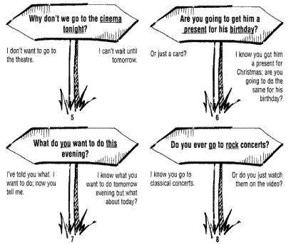 Exercise 8. Read the question, stressing one of the underlined words. Then identify which of the alternatives is implied