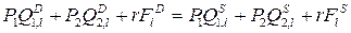 где Mi – бюджет i-го потребителя, Pj, r t - соответственно цены благ и факторов, j = 1,2,..n, t=1,2,...m, FS i, t - заданный объем t-го фактора, принадлежащего i-му потребителю. В целях упрощения предположим, что каждая фирма производит только один вид благ. При заданной технологии и известных ценах на блага и факторы производства фирма, максимизирующая прибыль, формирует функцию предложения блага и функцию спроса на факторы. Сумма предложений всех фирм, производящих одно и то же благо, образует отраслевое предложение: