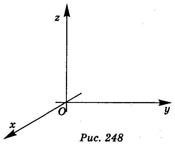 Кожна вісь точкою О розбивається на дві півосі — додатну, позначену стрілкою, і від'ємну. Площини, які проходять через х і у, х і z, у і z, називають координатними площинами і позначають відповідно: ху, хz, уz.