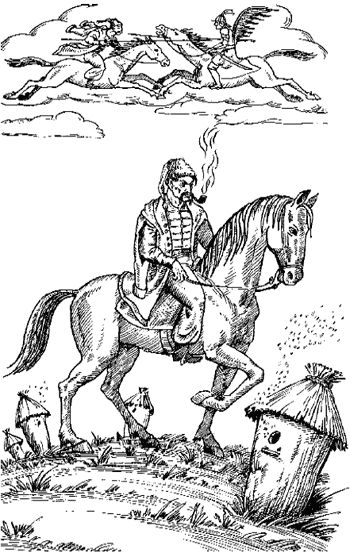 А ковалі знай кували, та не всі водно: хто шаблю‑домаху, хто лемеша гніздюкові, хто кочетки для весел рибалкам з Орелі, хто підківки молоді на чоботи, а дід Слива свистілки та пищики – здитинів на старість; викує, посвистить, а потім роздає ті пищики дітям по хуторах. Кузні стояли над Чортомликом, усі вряд, загнані в землю, закіптюжені, Сливина – безверха, жужелицю висипали на берег, і вона чаділа синім димом. Перед кузнями – потріскані жорнові камені, на них запорожці точать коси й шаблі, люблять також вони посидіти на тих каменях та погомоніти про нелегке козацьке життя‑буття. Ковалі – майже всі характерники, любо з ними погомоніти, хоч трохи й страшно. Ковальське плем’я дружне й запекле. Зачепи одного – збіжаться всі. А треба – й чортові в морду плюнуть. Разом і поодинці. Недарма кажуть, що то коваль з чортом у Чортомлицькій могилі скарб заховали. Насправді ж ковальський скарб – руки. Всілякі є майстри, один уміє тільки коня підкувати, а інший викує коліща до французької рушниці, й жоден чоловік на світі не скаже, що викуване те коліща над Чортомликом, а не над Сеною. Є такі ковалі, до яких люди пливуть плавом, вони одсилають їх до інших майстрів, а ті не йдуть, мовляв: «Я зачекаю». – «Так довго ж». – «Скільки буде». Коваля чути по дзвону молота, а слава їхня лунає на сотні верст. Сірко й сам, коли йому щось треба, звертається тільки до Скуби, і ламає перед ним шапку (якщо йдеться про своє, власне), і погрожує нагаєм (якщо йдеться про грамадське). За останньою кузнею – кілька гутдимарок, де переплавлюють залізо, одна куріла, й двоє чубатих дужих ковальчуків волокли щипцями до води червону гуску – залізний зливок пудів зо два. Від кузень і гут тягло гірким запахом заліза та криці, від пекарень слався запаморочливий запах свіжого хліба (пекарі саме кінчали випічку), обидва запахи сягали широкої базарної вулиці, намагалися потяти один одного. Не потинали, змішувалися, і так, перемішані, розсівалися по лузі. Дух хліба і запах криці одвіку ходять у парі. З кривобокої ятки на краю майдану просто під ноги Сірковому коневі вибіг низенький рудий крамар з сувоєм синьої габи в руках, задзигорів щось швидко‑швидко, показуючи тим же сувоєм на козака, що, обіпершись об облізлу колону ятки, смоктав люльку. Врешті Сірко зрозумів, що йому торочить крамар: дав він козакові синьої габи, той узяв її буцім показати кравцеві – мовляв, чи вистачить на штани та кунтуш, – а тоді габу повернув, утявши собі шмат на шапку. – Киш, – сказав крамареві Сірко, – йди з позовом до судді – по чину, нехай судить справедливо, зрілим оком. Крамар лупав очима, відступав – сам знав, що звернувся не по чину, йти до судді теж не хотілося, бо позовний калач, либонь, коштує стільки, як те сукно, та й невідомо, чи ще відсудить. Сірко проїхав повз ятку, біля якої стояв козак: кабардинка з нашитим навхрест золотим позументом була насунута аж на лоба – добряча шапка, мабуть, з тої таки габи, – очі з‑під шапки зорили кудись понад ятки, вони були ліниві, вдавано ліниві, в їхній глибині чаїлися глуз і насторога: адже не сподівався в такий мент нахопитися на кошового. За ятками і крамними коморами стояло кілька комор без вікон – темних, великих, з дубового тесу – фуражних і зернових. Біля Січі годується гибіль усякого люду, їдуть сюди вони з усієї України, декотрі проциндрюють і те, з чим приїхали, інші на