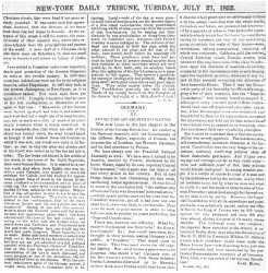 Часть страницы «New‑York Daily Tribune» со статьей из серии «Революция и контрреволюция в Германии».