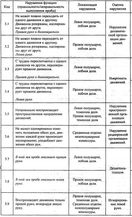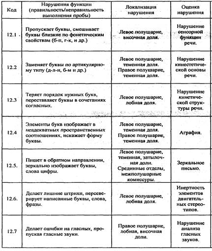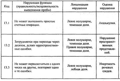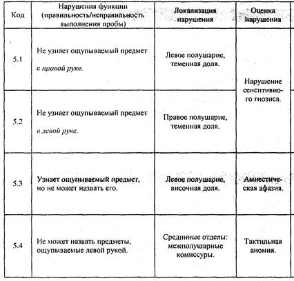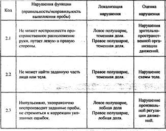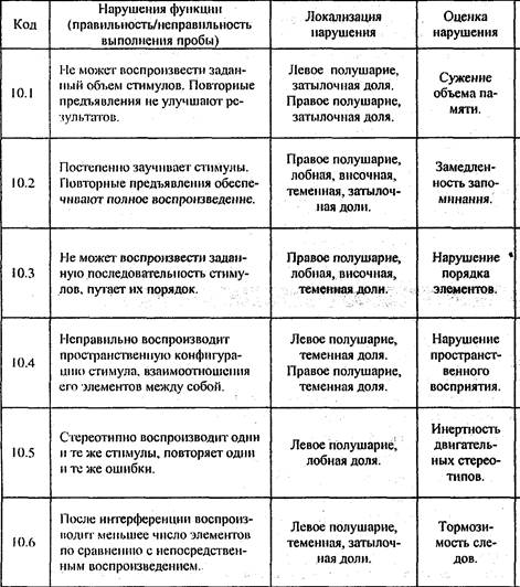 Суммарная таблица нарушений высших психических функций при поражении Диагностика