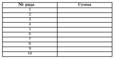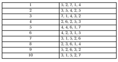 Методика применяется для изучения кратковременной памяти в тех случаях, когда кратковременная память несет основную функциональную нагрузку. Испытуемому вручается бланк, после чего экспериментатор дает следующую инструкцию. Инструкция: Я буду зачитывать числа — 10 рядов из 5 чисел к каждом. Ваша задача — запомнить эти 5 чисел в том порядке, в каком они прочтены, а затем в уме сложить первое число со вторым, второе с третьим, третье с четвертым, четвертое с пятым, а полученные 4 суммы записать в соответствующей строке бланка. Например, 6, 2, 1, 4, 2 (записывается на доске или на бумаге). Складываем 6 и 2 — получается 8 (записывается); 2 и 1 — получается 3 (записывается); 1 и 4 — получается 5 (записывается); 4 и 2 — получается 6 (записывается). Если у испытуемого есть вопросы, экспериментатор должен ответить на них и приступить к проведению теста. Интервал между зачтением рядов —15 с. Ключ: Подсчитывается число правильно найденных сумм (максимальное их число — 40). Норма взрослого человека — от 30 и выше. Методика удобна для группового тестирования. Процедура тестирования занимает мало времени —4—5 мин. Для получения более надежного показателя оперативной памяти тестирование можно через некоторое время повторить, используя другие ряды чисел. Содержание методики