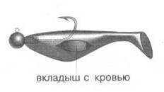 «Это принципиально новая модель, техника ловли на которую совмещает элементы отвесного блеснения и спиннинговой ловли (рис. 33). Внутри приманки установлено грузило специальной формы с утяжеленной нижней частью-лопаткой прямо на крючке — такой же, как у зимней отвесной блесны. Слегка изгибая лопатку или подтачивая ее, можно изменять траекторию планирования. Помогает полету и особая форма насадки с длинным хвостом-стабилизатором.