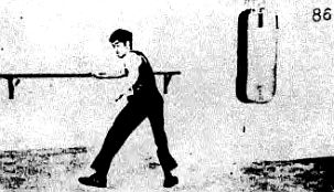 Сконцентрируйтесь на точке, расположенной на мешке, по которой вы хотите ударить, и все время держите ее в голове, пока совершаете поворот корпусом тела (фотография 86).