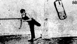 Поворот необходимо выполнить, стоя на передней части ступни правой ноги, а голова должна быть так повернута, чтобы видеть цель, прежде чем вы ударите по ней, как показано на фотографии 87.