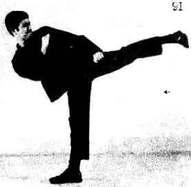 Пока вы поворачиваетесь, не смейте ею совершать какой-либо замах, ибо это выбьет вас из равновесия. Кроме того, не держите ее вытянутой, т. к. не сможете нанести удар. Когда вы завершите поворот на 180°, как показано на фотографиях 91 и 91А, с силой вытяните ногу.