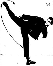 Если вы находитесь в правосторонней позиции, ваша ступня будет двигаться слева направо (по ходу движений часовой стрелки) по короткой окружности, как на фотографиях 94 и 94А.