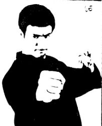 Как только противник начинает нападение, как показано на фото 110 Ли блокирует своей левой рукой левую руку противника и отводит ее в сторону и одновременно наносит контрудар вытянутыми пальцами правой руки в его лицо, как показано на фото 111.