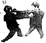 Как только противник начинает круговой удар кулаком, Ли выставляет вперед свою правую руку, как показано на фотографии 98.