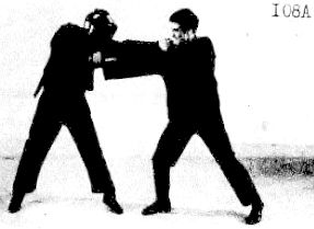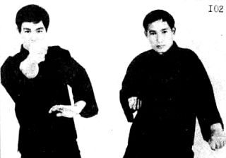 Затем, на фото 107, вы видите, как Ли блокирует удар противника легким шлепком по руке, наносящей удар, но достаточно сильным, чтобы отвести удар противника.