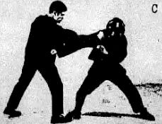 На фотографии С вы видите удар и блокаду и затем контрудар в лицо, выполненные одним непрерывным движением.