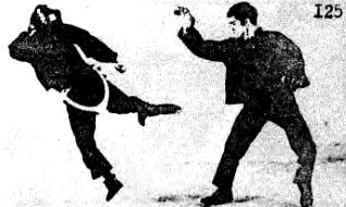 Против противника, стоящего в левосторонней позиции (левая нога впереди), как на фото 122.