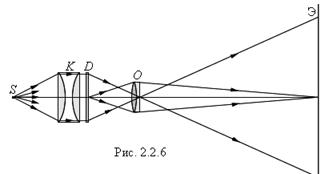 Во многих оптических приборах свет последовательно проходит через две или несколько линз. Изображение предмета, даваемое первой линзой, служит предметом (действительным или мнимым) для второй линзы, которая строит второе изображение предмета. Это второе изображение также может быть действительным или мнимым. Расчет оптической системы из двух тонких линз сводится к двукратному применению формулы линзы, при этом расстояние Частным случаем является телескопический ход лучей в системе из двух линз, когда и предмет, и второе изображение находятся на бесконечно больших расстояниях. Телескопический ход лучей реализуется в зрительных трубах – астрономической трубе Кеплера и земной трубе Галилея. Тонкие линзы обладают рядом недостатков, не позволяющих получать высококачественные изображения. Искажения, возникающие при формировании изображения, называются аберрациями. Главные из них – сферическая и хроматическая аберрации. Сферическая аберрация проявляется в том, что в случае широких световых пучков лучи, далекие от оптической оси, пересекают ее не в фокусе. Формула тонкой линзы справедлива только для лучей, близких к оптической оси. Изображение удаленного точечного источника, создаваемое широким пучком лучей, преломленных линзой, оказывается размытым. Хроматическая аберрация возникает вследствие того, что показатель преломления материала линзы зависит от длины волны света Поэтому в современных оптических приборах применяются не тонкие линзы, а сложные многолинзовые системы, в которых удается приближенно устранить различные аберрации. Формирование собирающей линзой действительного изображения предмета используется во многих оптических приборах, таких как фотоаппарат, проектор и т. д. Фотоаппарат представляет собой замкнутую светонепроницаемую камеру. Изображение фотографируемых предметов создается на фотопленке системой линз, которая называется объективом. Специальный затвор позволяет открывать объектив на время экспозиции. Особенностью работы фотоаппарата является то, что на плоской фотопленке должны получаться достаточно резкими изображения предметов, находящихся на разных расстояниях. В плоскости фотопленки получаются резкими только изображения предметов, находящихся на определенном расстоянии. Наводка на резкость достигается перемещением объектива относительно пленки. Изображения точек, не лежащих в плоскости резкой наводки, получаются нерезкими в виде кружков рассеяния. Размер