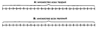 Поскольку социальные науки изучают только социальные явления, ограничимся ими и выразим все возможное множество явлений, которые могли бы изучать эти науки, ограниченным множеством А. Второе множество будет представлять совокупность всех теорий — общих и частных, которые описывают изученные явления (В). Если сопоставить оба множества, то может возникнуть вопрос: какое из них больше (рис. 35)? На первый взгляд ответ на вопрос очевиден: число непознанных явлений, которые предстоит изучить социальным наукам, гораздо больше числа существующих теорий. 35 Толстова Ю.Н., Масленников Е.В. Указ. соч. С. 104.