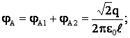 Задача №4. В двух вершинах при основании прямоугольного равнобедренного треугольника расположены точечные заряды q1 = q2 = 2·10-8Кл. Расстояние между зарядами 0,6 м. Найти напряженность и потенциал электрического поля в третьей вершине треугольника, а также по середине между зарядами.