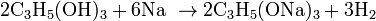 Оскільки продукт реакції містить в молекулі гідроксильну і альдегідну групи, його назвали альдолем (від слів альдегід і алкоголь), а сама реакція конденсації оксосполук в лужному середовищі отримала назву альдольної конденсації. Ця реакція має велике значення в органічному синтезі, оскільки дозволяє синтезувати різні гідроксикарбонільні сполуки. Альдольну конденсацію можна проводити в змішаному варіанті, з використанням різних карбонільних сполук. Часто альдольна конденсація супроводжується відщепленням води і утворенням α,β-ненасиченої карбонільної сполуки. У такому випадку реакція називається кротоновою Етаналь застосовують в промисловості для виробництва ацетатів целюлози, оцтової і пероцтової кислот, оцтового ангідриду, етилацетату, гліоксалю, 2-етилгексанолу, алкіламінів, бутанолу, пентаеритриту, алкілпіридинів, 1,3-бутиленгліколю, хлоралю. Також використовується як відновник у виробництві дзеркал. Світове виробництво у 1982 році становило 2 млн т/рік (без СРСР)[6]. 40 Гліцери́н (гліцеро́л) — трьохатомний спирт. Хімічна формула — C3H8O3, або C3H5(OH)3. З водою гліцерин змішується в усіх пропорціях, причому об'єм такого розчину буде трохи менший від суми первинних об'ємів води й гліцерину. В усіх пропорціях змішується з етанолом. Не розчиняється в жирах, олії, бензині,хлороформі.[3] Наявність гідроксильних груп зумовлює подібність гліцерину до одноатомних спиртів, він вступає в ті самі реакції, але за участю трьох гідроксильних груп. Реакції повного окиснення (горіння) відбувається, як і в інших органічних речовин, з утворенням вуглекислого газу іводи. Гліцерин вступає в реакцію заміщення з металічним натрієм, яка супроводжується виділенням водню. Реакції[ред. • ред. код] · Горіння: