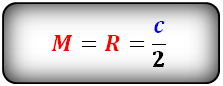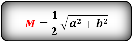 Длина медианы прямоугольного треугольника Медиана, отрезок |CO|, исходящий из вершины прямого угла BCA и делящий гипотенузу c, пополам. Медиана в прямоугольном треугольнике (M), равна, радиусу описанной окружности (R).