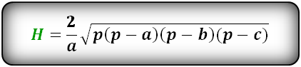 Формула длины высоты через составные отрезки гипотенузы, (H):