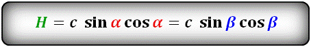 Формула длины высоты через гипотенузу и острые углы, (H):