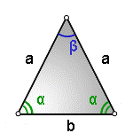 b - сторона (основание) a - равные стороны α - углы при основании β - угол образованный равными сторонами