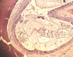 В - дополнительный хозяин – карп, с метацеркарием в нем (3 – метацеркарий) (по Piekarski с изменениями)