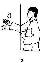 В теории неподвижного локтя ограничительные линии определяют границы движения руки в сторону, вверх и вниз. Верхняя граница — брови, нижняя — область паха, в стороны — чуть шире плеч. (рис. 3).