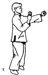 Удары руками являются визитной карточкой школы ВИН ЧУН. Плотность ударов в поединке достигает такого уровня, что зачастую на ум приходит аналогия с пулеметной очередью. При этом силы одного из них достаточно, чтобы сбить с ног человека среднего телосложения. Мало того, атакующие движения часто используются и в защите. Удивительно, но например прямой удар вертикальным кулаком, выполненный под определенным углом, действительно может выполнить роль отводящего блока и одновременно контратаки. В некоторых школах гонконговского направления стиля ВИН ЧУН основной упор делается на изучение и отработку прямого удара кулаком НОУ МУН ЧУЙ. Считается, что прямолинейная траектория является самой короткой, а следовательно движение — самым быстрым, что крайне важно в условиях ближнего боя. С этим трудно не согласиться, но в реальности часто наоборот, круговое или дугообразное движение более эффективно, чем прямой удар. Так например в классическом базовом упражнении ЛАП САУ во многих школах вместо прямого удара НОУ МУН ЧУЙ наносят рубящий удар кулаком. В предлагаемой Вашему вниманию книге будут рассмотрены пять базовых ударов кулаком, изучаемых во вьетнамском направлении школы ВИН ЧУН. 1) Прямой удар (НОУ МУН ЧУЙ) Основной удар в стиле ВИН ЧУН. Наиболее часто используемый на практике, поэтому его отработке необходимо уделять наибольшее внимание. НОУ МУН ЧУЙ наносится по центральной линии прямо вперед. Кулак принимает вертикальное положение. Ударной поверхностью являются костяшки мизинца, безымянного и среднего пальцев. В конечной фазе удара локоть выпрямляется полностью (рис. 1).